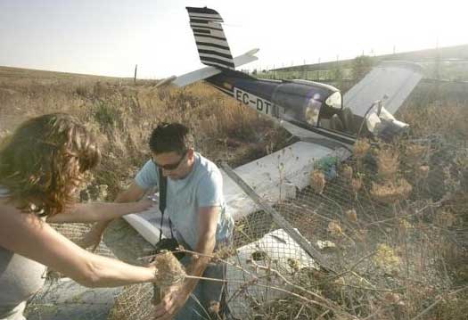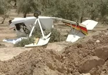 del campo, pero el ultraligero cayó a plomo y chocó contra un talud, según