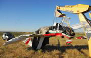autogiro biplaza quedó destrozado a consecuencia del fuerte impacto contra un