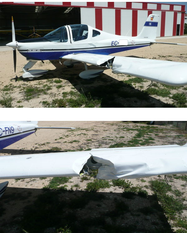 Un buitre impacta contra la aeronave a unos tres kilómetros del campo de vuelo de San Torcuato. El piloto consigue aterrizar el ultraligero y ni él ni el acompañante sufren daños. El impacto del ave produce un boquete en el plano izquierdo.