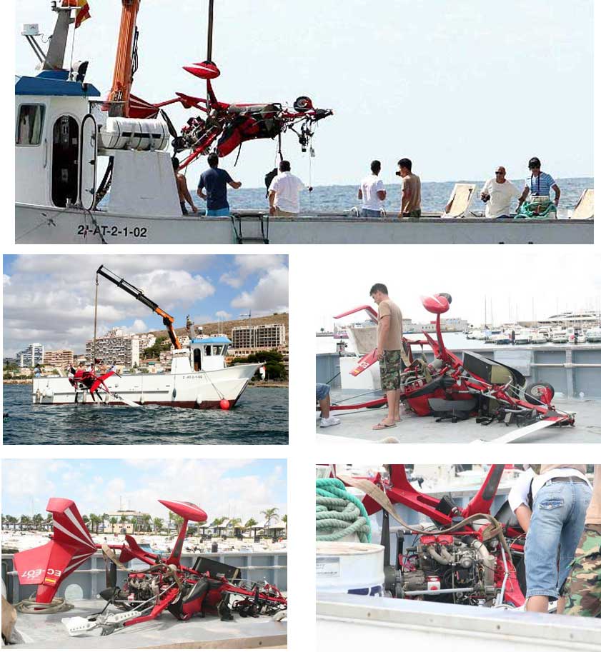 del ultraligero, se encontraba consciente, únicamente sufrió lesiones en un