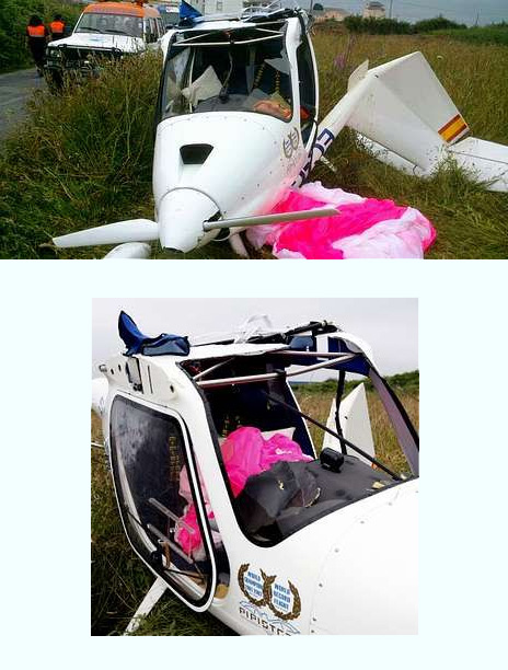 que el ultraligero en el que viajaran se precipitara contra el suelo junto a