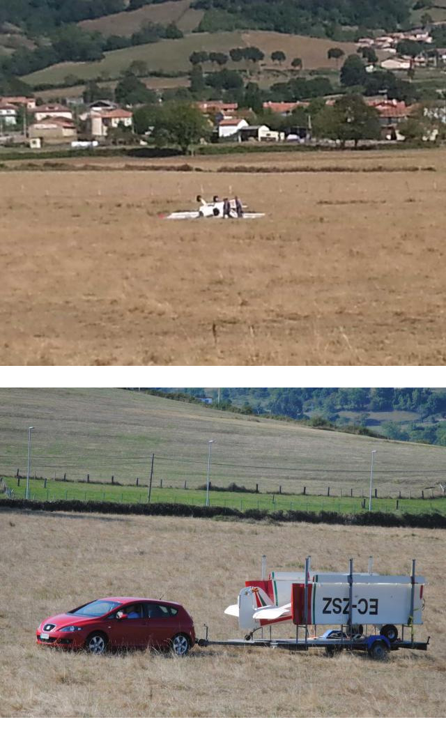 ...la toma de emergencia en esa finca no tuvo nada que ver con el motor , sino con la helice , de madera , a la cual se la desprendio una cantonera en vuelo , originandole tal vibracion que tuvo que bajar de revoluciones y aterrizar de inmediato ,ya aterrizando , vio que se iba contra una alambrada y aplico frenos , pero al ser de tren convencional y ayudado por una perversa zanja , capoto´, el fuselaje un poco doblado , pero el piloto solo un pequeño rasguño , eso si , con un buen susto ( es su primera toma de emergencia )...