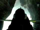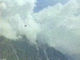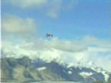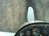piloto húngaro Peter Besenyei pasa a través de un hueco de un acantilado. |