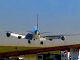 divierte en la playa mientras un Boeing 747 aplica plena potencia en las