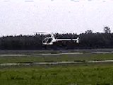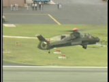Un helicóptero realizando una exhibición en un aeropuerto. |