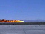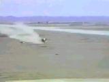 Un caza dirigiéndose a la pista rozando el suelo y levantando una espectacular polvareda. |