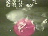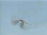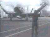 Un mecánico que trabaja en un portaaviones cerca de la turbina de un reactor, es aspirado por éste y arrojado por la parte posterior. Al parecer sobrevivió. |