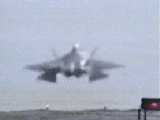 Un F-22 con problemas en el aterrizaje choca contra la pista a gran velocidad. |