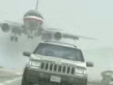Cortometraje de un avión posándose sobre un Jeep Cherokee |