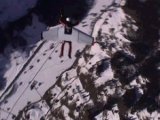 hombre se tira desde un globo con dos turbinas atadas a sus tobillos |