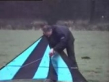hombre es arrastrado por una cometa un día de fuerte viento |