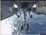 Aterrizaje en un portaaviones visto desde la panza de un F-18. |