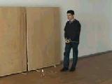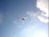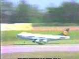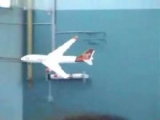 Un Boeing 747-400 de R/C volando en el interior de un gimnasio. |